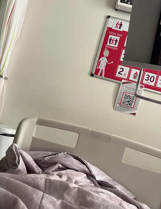 De volgende dag, mocht mijn partner al gauw komen en omdat ik een eigen kamer had en echt angst had dat ik misschien nooit het ziekenhuis zou uitkomen, mocht hij blijven. Er werd zelfs al gekeken als ik opnieuw een nacht moest blijven dat er al een bed bij gezet zou worden voor mijn partner zodat ik niet alleen zou blijven daar. Dat vond ik heel fijn, ze waren allemaal heel erg zorgzaam en lief voor mij en mijn partner.